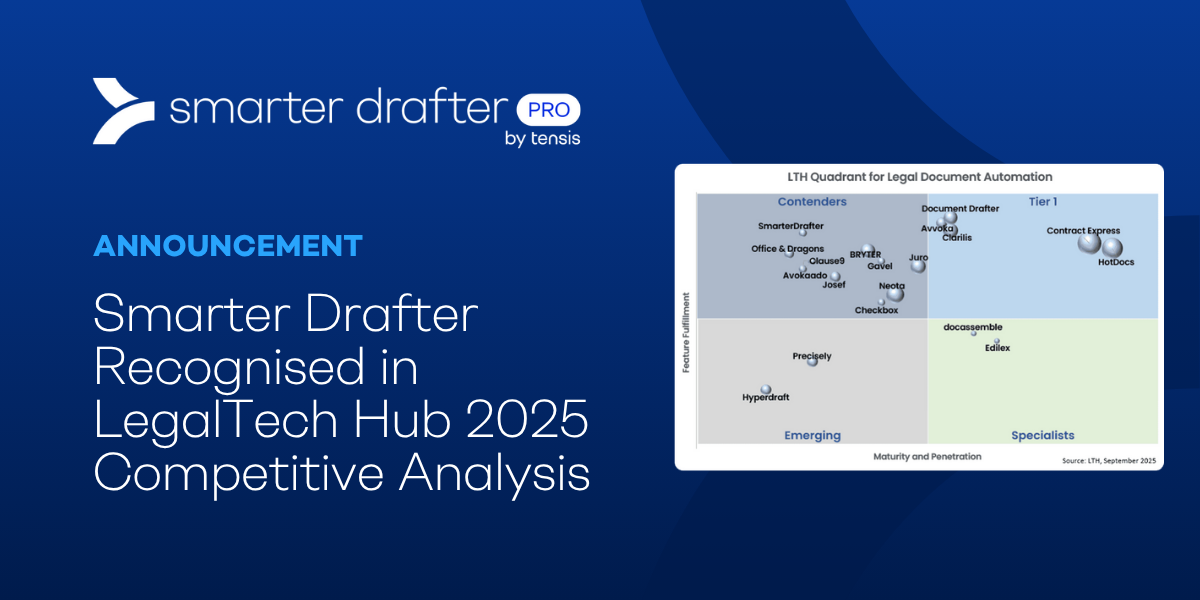 Smarter Drafter has been recognised in the LegalTech Hub 2025 Competitive Analysis for Document...
